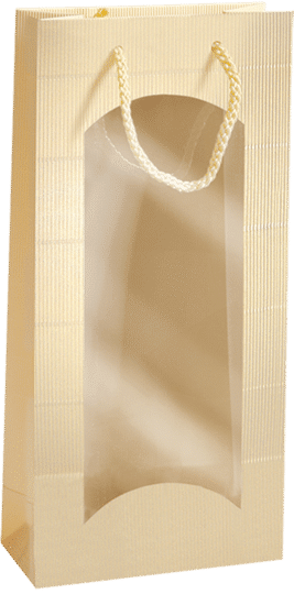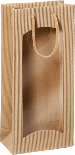 Praktische Tasche für viele Artikel geeignet. Das Sichtfenster gewährt dem Kunden bereits den Blick auf die Ware. Wird gerne als Flaschenverpackung (Wein, Likör, Öle etc.) verwendet. Alle Taschen mit farbigen Kordeln. Geeignet für 2x 0,75/1L Flaschen.