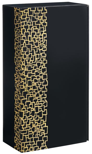Präsentkarton in elegantem Schwarz und Veredelung mit Glitzerlack in Gold.